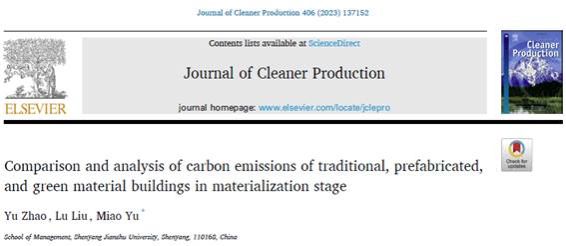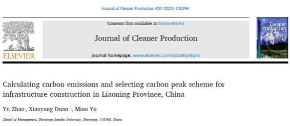 另外,两篇论文Comparison and analysis of carbon emissions of traditional, prefabricated, and green material buildings in materialization stage和Calculating carbon emissions and selecting carbon peak scheme for infrastructure construction in Liaoning Province分别发表在《Journal of Cleaner Production》(SCI, IF11.1)上。这两篇论文通过碳排放因子和能值分析方法,提供了对建筑在物化阶段碳排放的新视角,并预测了辽宁省基础设施建设碳排放峰值的最优路径。