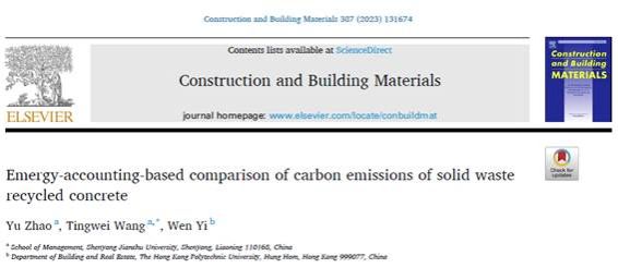 其中,论文Emergy-accounting-based comparison of carbon emissions of solid waste recycled concrete在《Construction and Building Materials 》(SCI, IF7.4)上发表。该论文通过能值相图详尽测算了传统混凝土生产方式、粉煤灰混凝土生产方式、煤矸石混凝土生产方式和再生骨料混凝土生产方式的碳排放量,为固体废弃物再生混凝土的减排提供了最优路径。