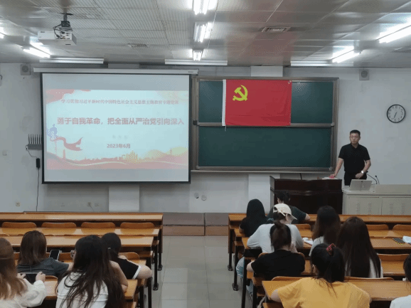 党支部书记结合公司学习贯彻习近平新时代中国特色社会主义思想主题教育要求,结合主题教育学习内容和自身工作经历,为支部内党员同志讲授“勇于自我革命,扎实加强政治理论学习”的专题党课。